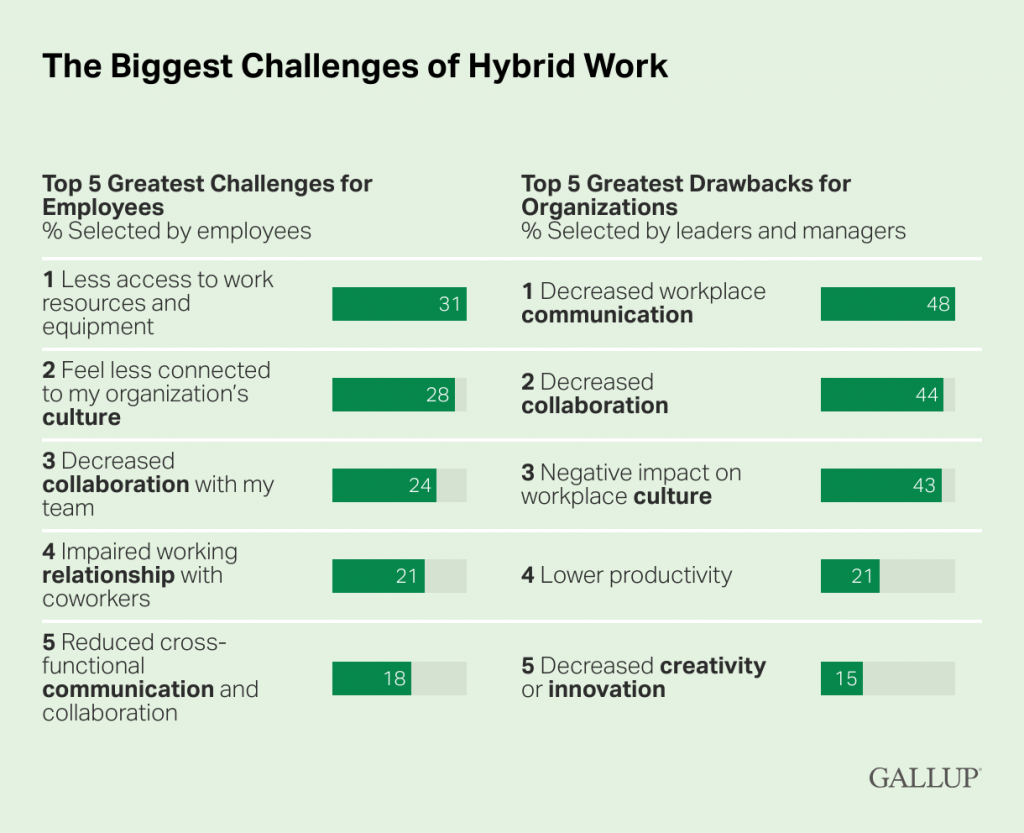 Les challenges d’un environnement hybrides d’après Gallup :